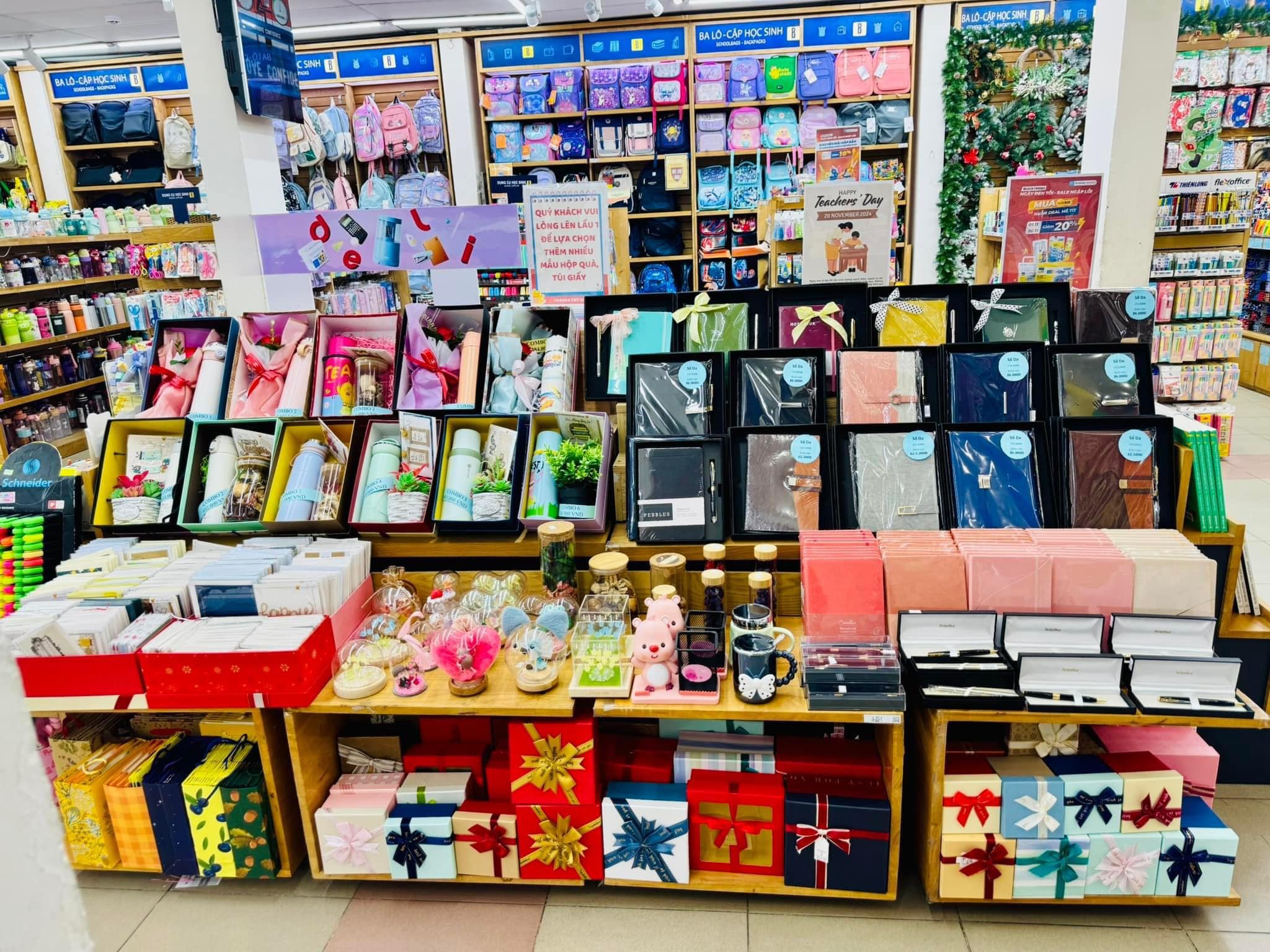 - Các combo quà tặng 20/11 gồm thiệp, sổ tay, bút, túi vải, hoặc các món quà trang trí tinh tế.