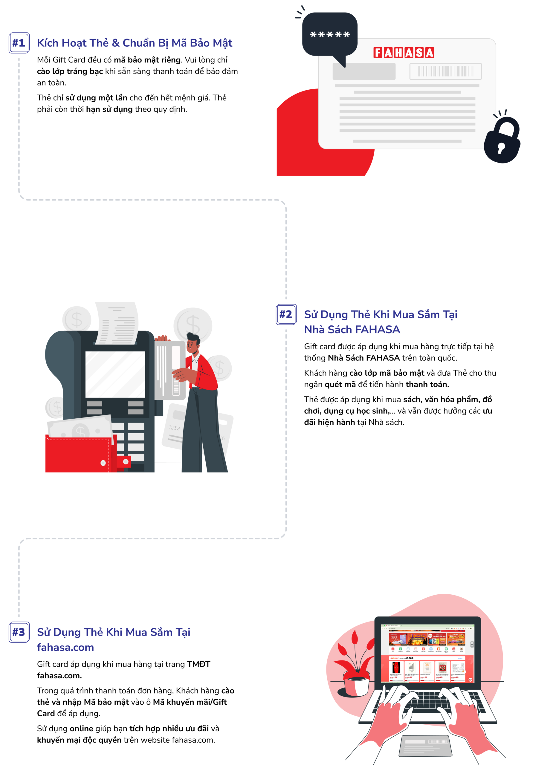 Thẻ Quà Tặng FAHASA có thể được sử dụng tại tất cả các nhà sách thuộc hệ thống trên toàn quốc hoặc mua sắm trực tuyến tại hệ thống fahasa.com